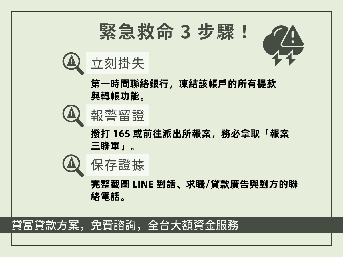 如果你已經把帳戶交出去了,或者已經收到銀行通知帳戶被列為警示,現在要做的不是慌,是按順序處理。
