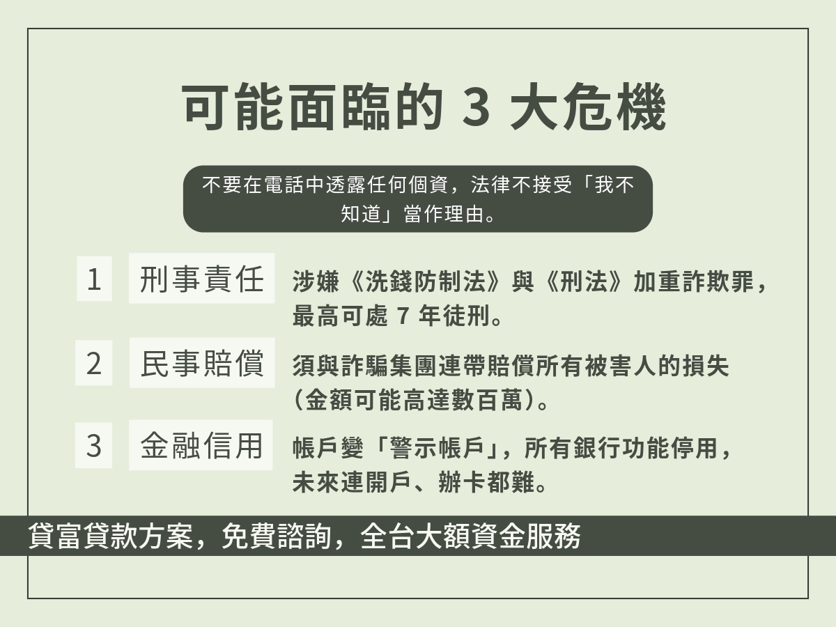 所以別抱著「沒人發現就沒事」的僥倖心態!帳戶交出去那一刻起,你就不再能控制後面會發生什麼事。