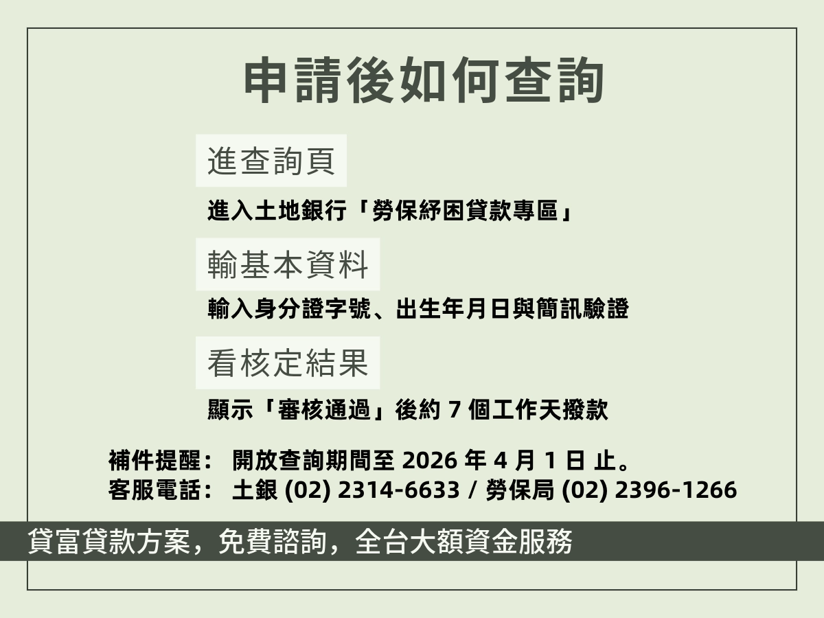 - 政府紓困貸款(115年方案):只要年資滿15年(算到115/1/2止)、生活困難、無欠費、沒借過或已還清,就可申請,不太卡投保單位。 建議:先上勞保局網站列印「勞保投保異動明細」或「投保薪資明細」,證明年資夠,再搭配銀行流水去問融資公司或銀行,過件率會高很多。