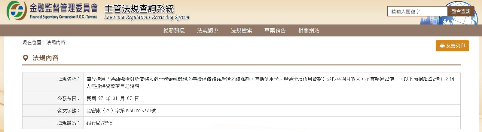 DBR22倍(Debt Burden Ratio)是屬於金管會明文規定的貸款上限值,就是為了防止民眾過度借貸,超過自己的還款能力。